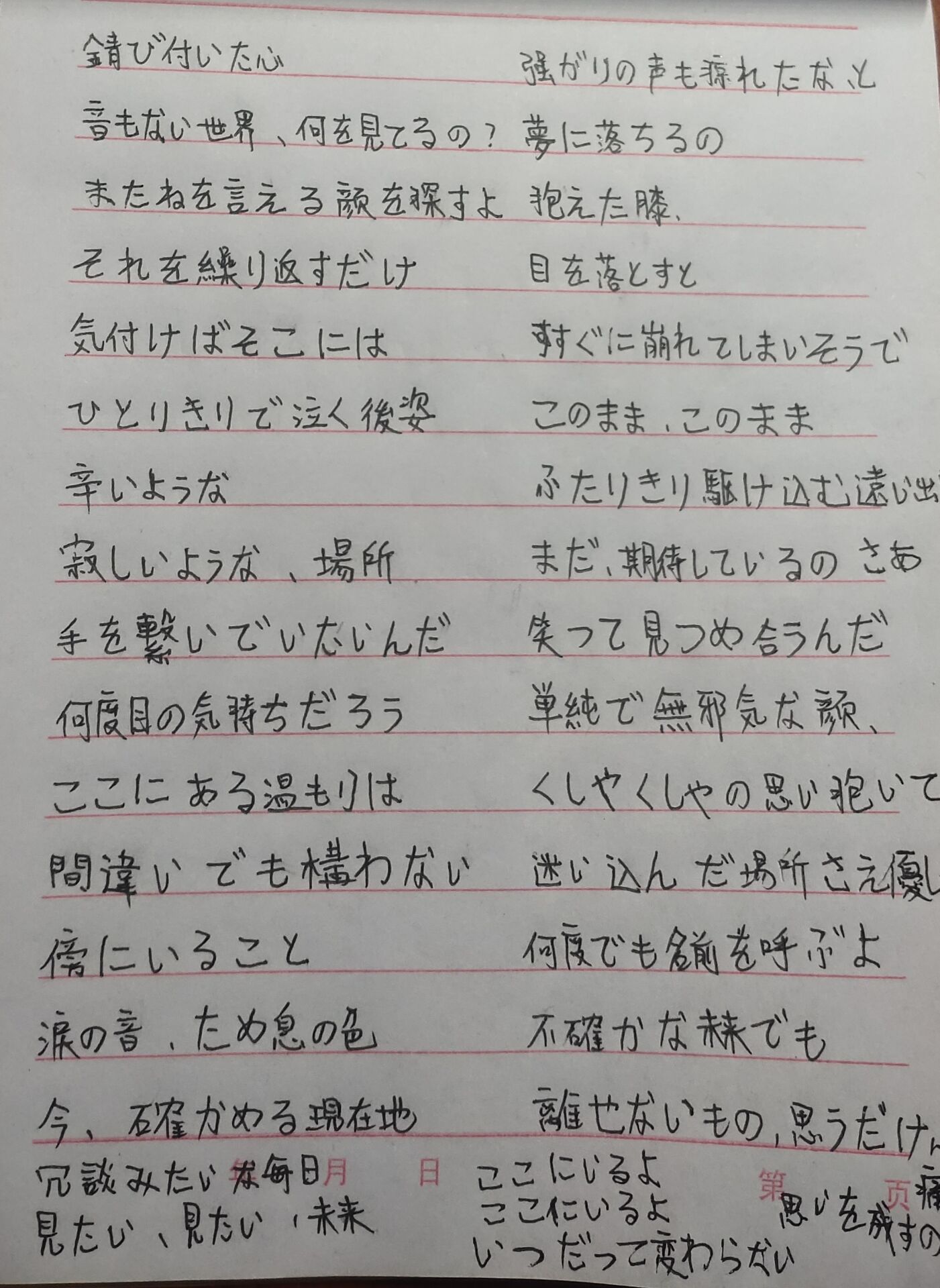 眼泪的音色 叹息的色彩今(いま)、确(たし)かめる现在地(げんざいち)