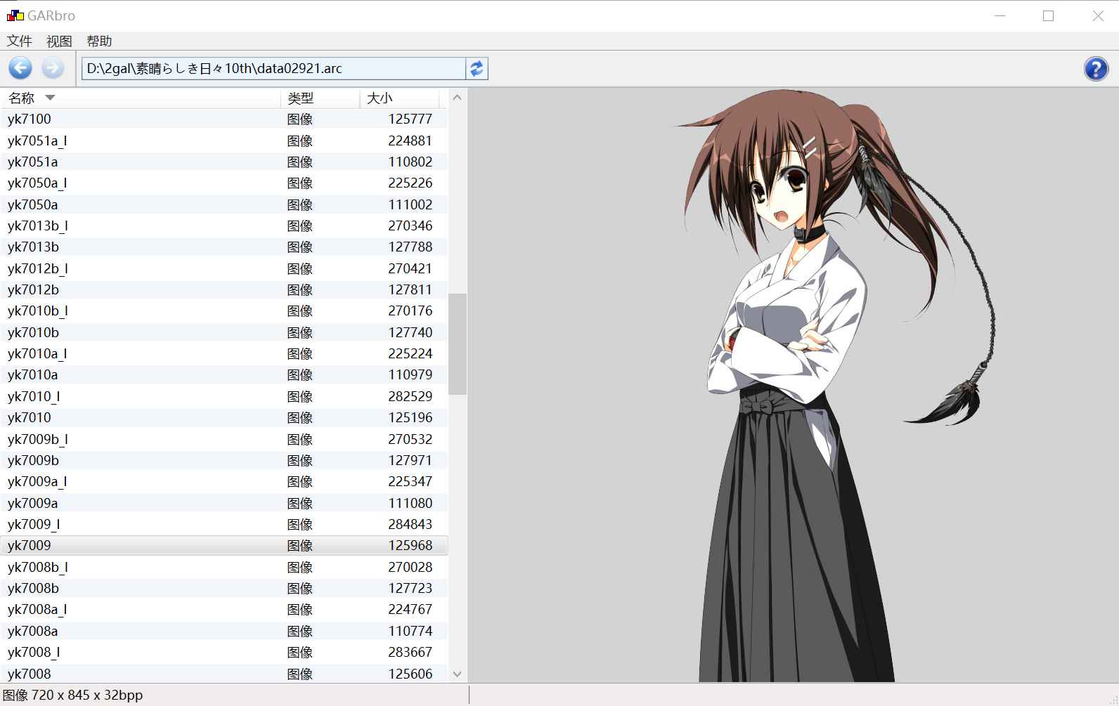 从帖子中得知了解包用的软件是GARbro(这个名字我不忍吐槽,我还以为是我误看了pro),之后一切都非常顺利,成功从游戏中提取了图片,视频和音频。毕竟是10年前的游戏,就算是10周年特别版也没有修改底层系统,所以轻松提取了,全程傻瓜式操作。我发现这个系统和脏翅膀的系统是同一个。提取图片时我选择了转换格式为png,为的是最大的清晰度,当然文件体积也涨了好几倍。